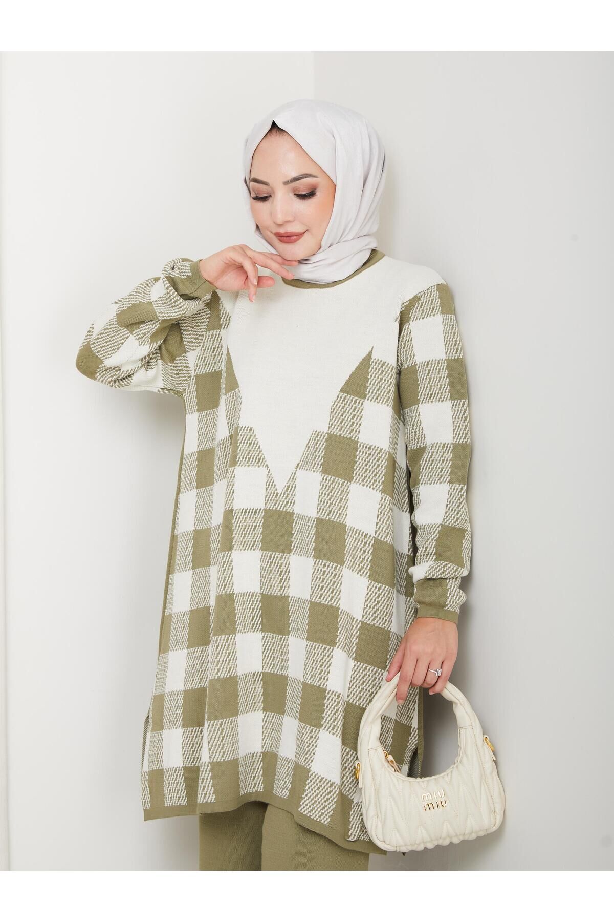 - Kış aylarında sıcak tutan ekose desenli triko pantolonlu tunik takım, hem şıklığı hem de konforu bir arada sunar.; - Tekstil materyali sayesinde yumuşak dokunuşuyla teninize nazikçe sarılırken, kareli deseniyle göz alıcı bir görünüm sağlar.; - Yetişkinler için tasarlanmış bu takım, günlük kullanım için idealdir; rahat kesimi ile gün boyu hareket özgürlüğü sunar.; - Standart kol tipi ve beli lastikli yapısı sayesinde vücut hatlarınıza uyum sağlayarak rahat bir kullanım imkanı tanır.; - Astarsız oluşuyla hafifliği ön planda tutarken, yüksek bel tasarımı modern bir siluet oluşturur.; - Cool & comfort persona ile tarzınıza sofistike bir dokunuş katarken, tesettür giyim koleksiyonuna özel detaylara sahiptir.; - 2'li paketiyle bütünsel bir kombin deneyimi yaşatırken, her ortamda stil sahibi görünmenizi sağlar.; - Kemersiz olması pratiklik kazandırırken regular kalıp ile her bedene uygunluk gösterir.; - Bisiklet yakası sayesinde sade ve zarif bir boynuz çizgisi sunarken uzun boyu soğuktan korur.; - Triko kumaşı kalın yapısıyla ısıyı muhafaza ederken 3 iplik dokuması dayanıklılığı arttırır.; - TR menşeli olup yerel üretim avantajlarından faydalanmanızı sağlar.; - Relax fit kesimiyle vücudu sarmayan rahatlıkta bir oturuşa sahip olup bol paça detayı modern bir hava katar.; - Casual/günlük ortamlarda rahatlıkla tercih edebileceğiniz bu takım, tunikli pantolonlu alt-üst takımıyla kombin kolaylığı sunar.; - Uzun kol boyu soğuktan korurken triko dokusuyla konforlu hissetmenizi sağlar.