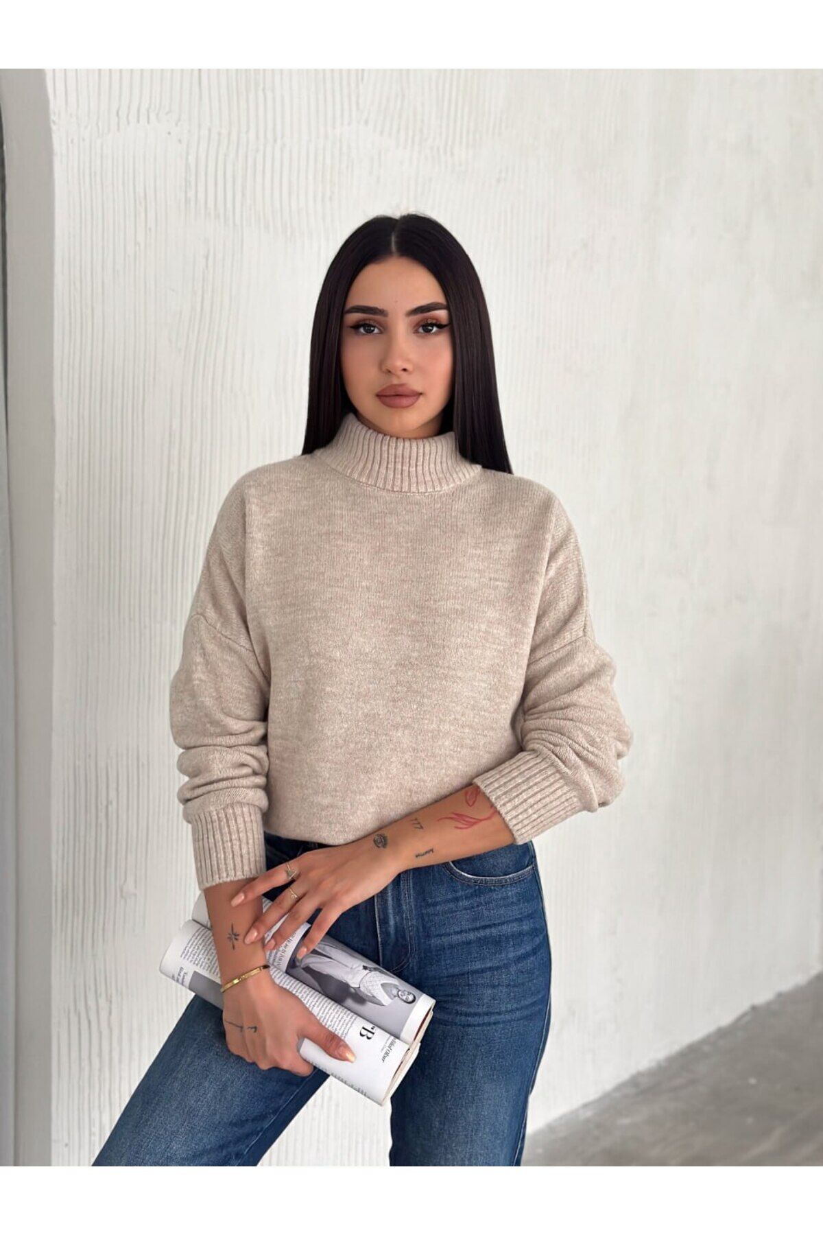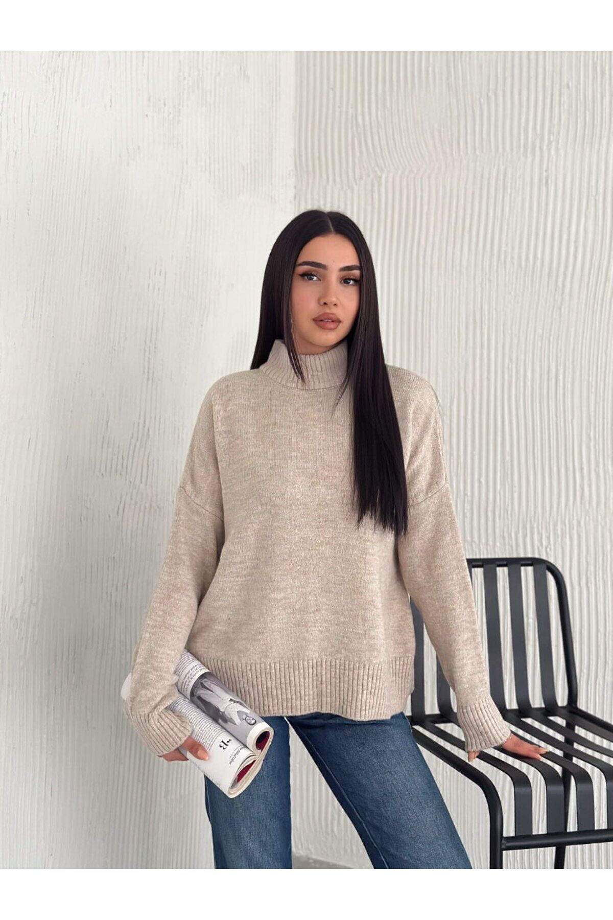 Örme Boğazlı Düz Triko Kazak