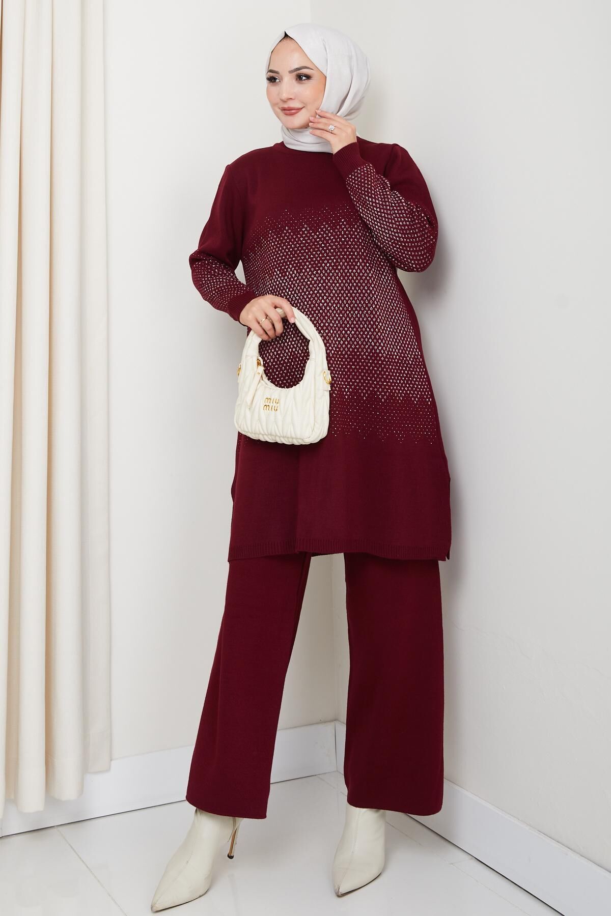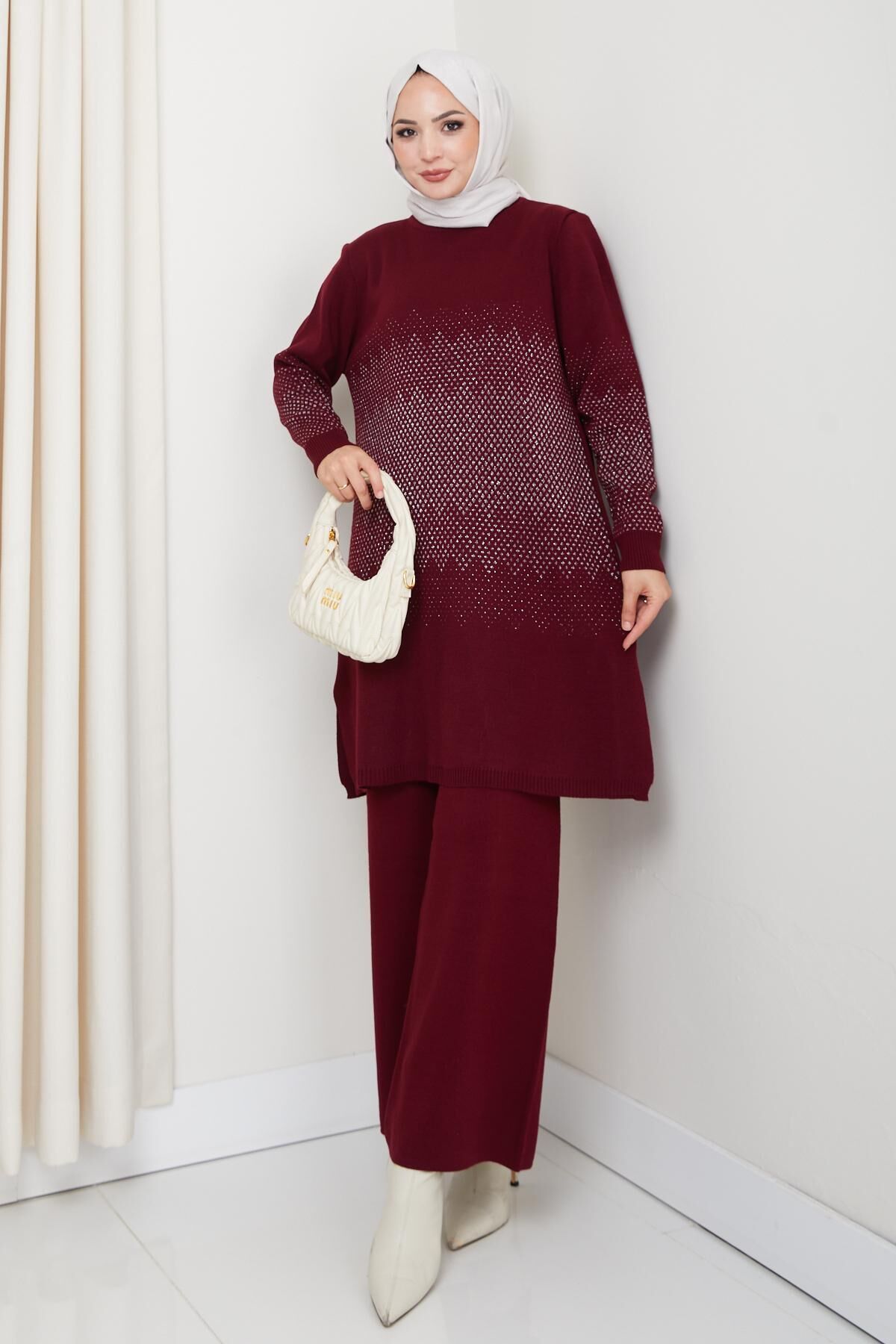 - Kış aylarında sıcak tutan, şık ve rahat bir kombin arayanlar için ideal.; - Tekstil materyali sayesinde yumuşak dokunuşuyla konfor sunar.; - Sade ve düz deseniyle kolayca kombinlenebilir, zamansız bir stil oluşturur.; - Yetişkinler için tasarlanmış olup, günlük kullanım için uygundur.; - Standart kol tipi ile hareket özgürlüğü sağlar; rahatlıkla giyilip çıkarılabilir.; - Beli lastikli yapısı sayesinde vücuda mükemmel uyum sağlar ve gün boyu rahatlık sunar.; - Astarsız oluşuyla hafiflik kazandırırken, triko kumaşı soğuk havalarda ekstra sıcaklık vaat eder.; - Yüksek bel tasarımı modern bir görünüm sunarken, vücut hatlarını zarifçe sarar.; - Cool & comfort persona'sıyla günlük şıklığı yakalamak isteyenler için mükemmel seçimdir.; - Tesettür giyim koleksiyonuna özel olarak tasarlanmıştır; tesettür modasına uygun detaylara sahiptir.; - Paket içeriği 2 parçadan oluşur; tunik ve pantolon kombinasyonu ile bütünsel bir stil sunar.; - Regular silueti sayesinde her bedene uygun rahatlıkta bir oturuşa sahiptir.; - Bisiklet yakası ile modern ve minimalist bir görünüm sağlar.; - Uzun boyu sayesinde bacakları olduğundan daha uzun gösterirken şıklığından ödün vermez.; - Triko kumaşın kalın yapısı soğuk havalarda ekstra koruma sağlar ve konforlu bir deneyim sunar.; - Tunikli pantolonlu alt üst takım olarak tasarlanmıştır; hem işlevsel hem de estetik bir seçenektir.; - Bol paça kesimiyle hareket serbestliği tanırken aynı zamanda trend bir görünüm kazandırır.; - 3 iplik dokuma tipi dayanıklılığı arttırarak uzun süreli kullanım imkanı tanır.; - Kadın/kız cinsiyetine hitap eden tasarım anlayışıyla herkes tarafından tercih edilebilir.; - Casual/günlük ortamlarda rahatlıkla kullanılabilen bu takım, günlük giyimin vazgeçilmezi haline gelir.; - Uzun kol boyu mevsimsel geçişlerde ideal koruma sağlarken şık duruşunu korur.
