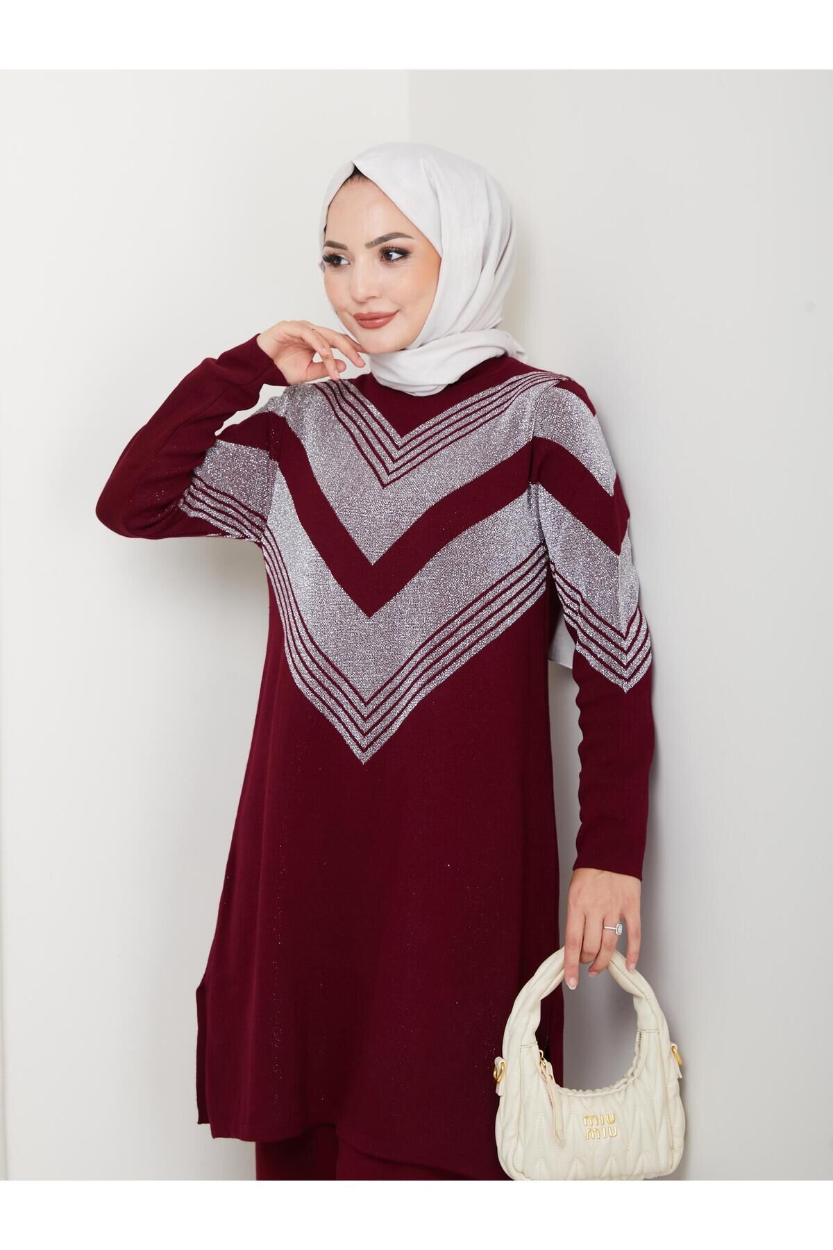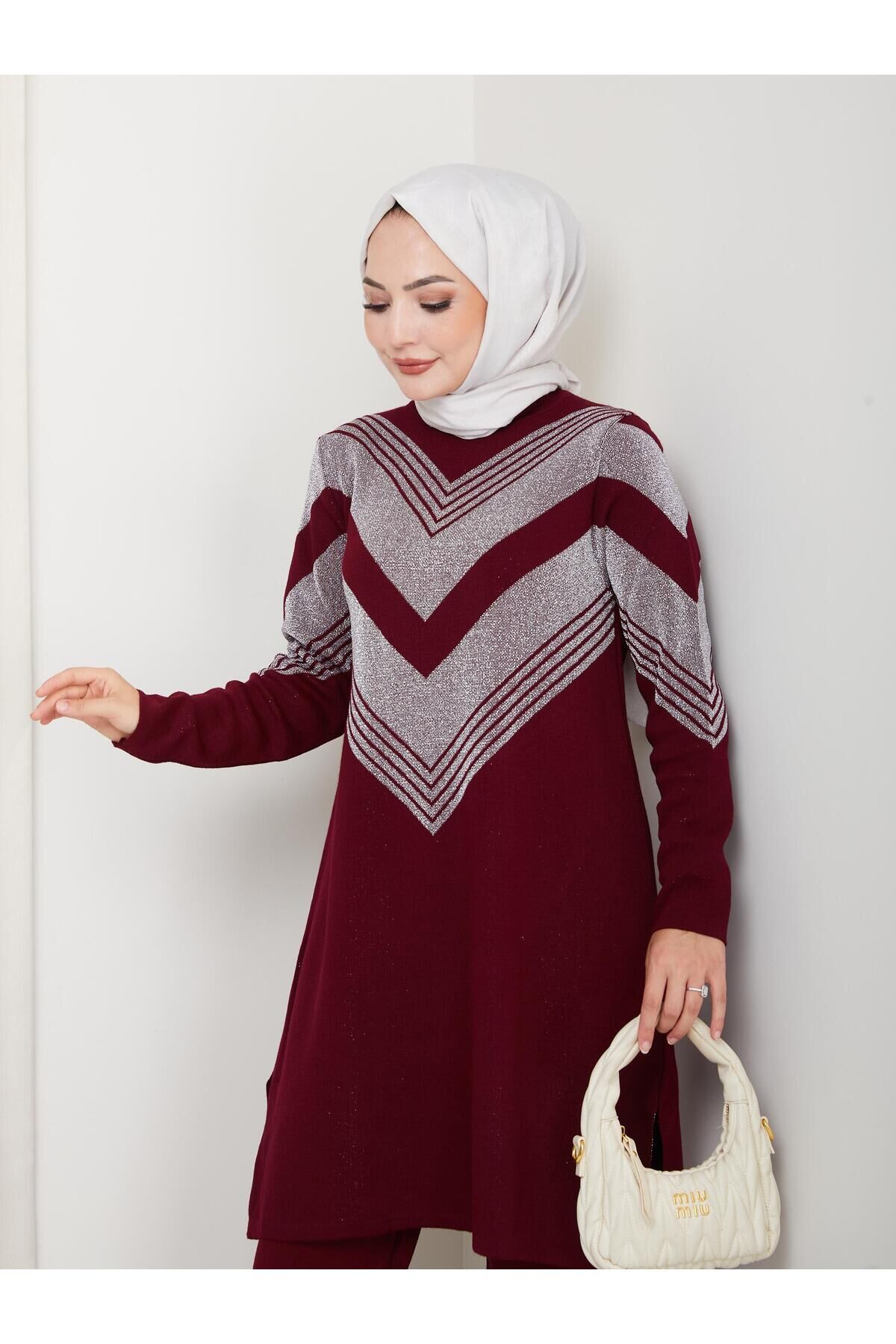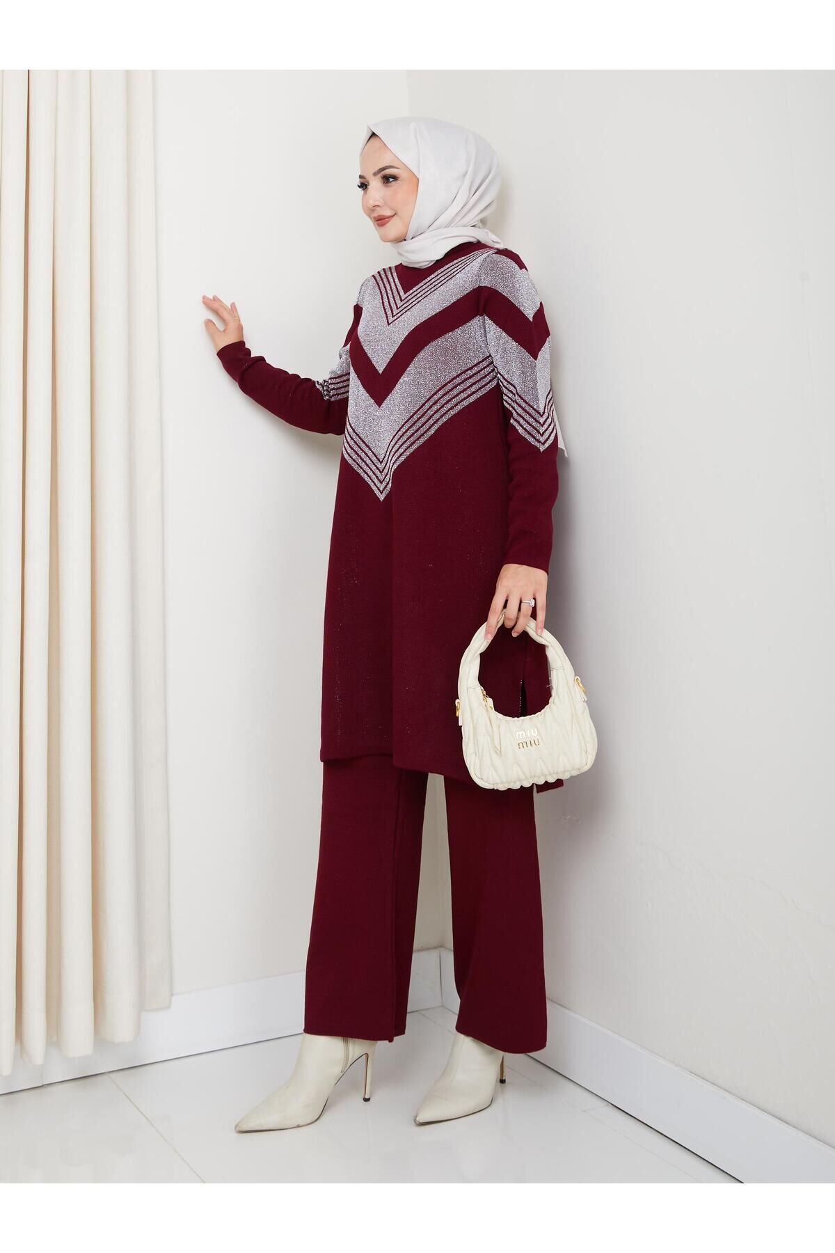 - Kış aylarında sıcak tutan, rahatlıkla tercih edebileceğiniz triko tunik pantolon takımı.; - Lastikli bel tasarımı sayesinde gün boyu konforlu bir kullanım sunar.; - Cool & comfort persona ile günlük şıklığınızı tamamlar; hem rahat hem de stil sahibi görünmenizi sağlar.; - Tesettür giyim koleksiyonuna özel olarak tasarlanmıştır; zarif detaylarıyla dikkat çeker.; - 2'li paket içeriği ile hem tunik hem de pantolon ihtiyacınızı tek seferde karşılar.; - Regular silueti sayesinde vücut hatlarınıza uyum sağlayarak rahat bir oturuş sunar.; - Bisiklet yakası ile modern ve sade bir görünüm kazandırırken, uzun boyu soğuktan korur.; - Triko kumaş tipi yumuşak dokusuyla konforlu bir deneyim vaat ederken, simli örme detaylarıyla göz alıcı bir parlaklık katmaktadır.; - Üretildiği ülke Türkiye'den gelen kaliteli malzemelerle üretilmiştir; yerel üretim avantajını yaşarsınız.; - Orta kalınlıkta triko yapısıyla mevsim geçişlerinde ideal sıcaklığı sağlar.; - Tunikli pantolonlu alt üst takım kombiniyle pratik ve şık bir gardırop oluşturmanıza olanak tanır.; - Bol paça kesimiyle hareket özgürlüğünüzü kısıtlamadan stil sahibi görünmenize imkan verir.